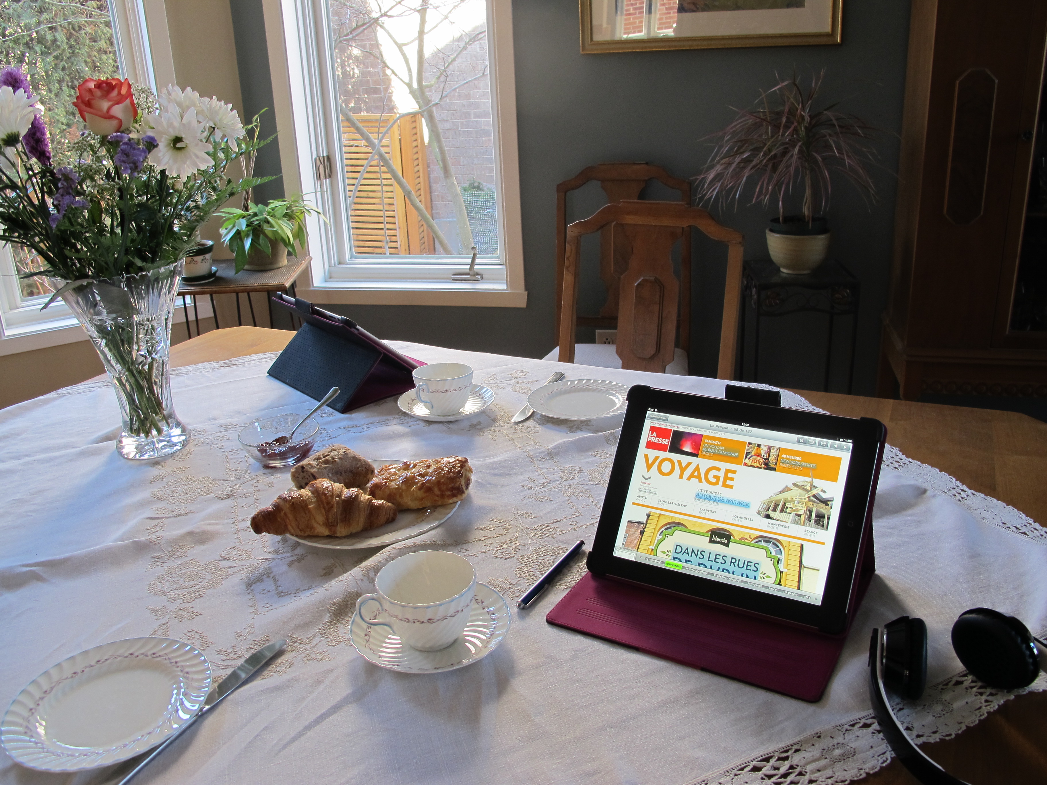 Cependant, je trouve que la tablette électronique (iPad) est plus pratique, comme le montre la photo ci-dessous :